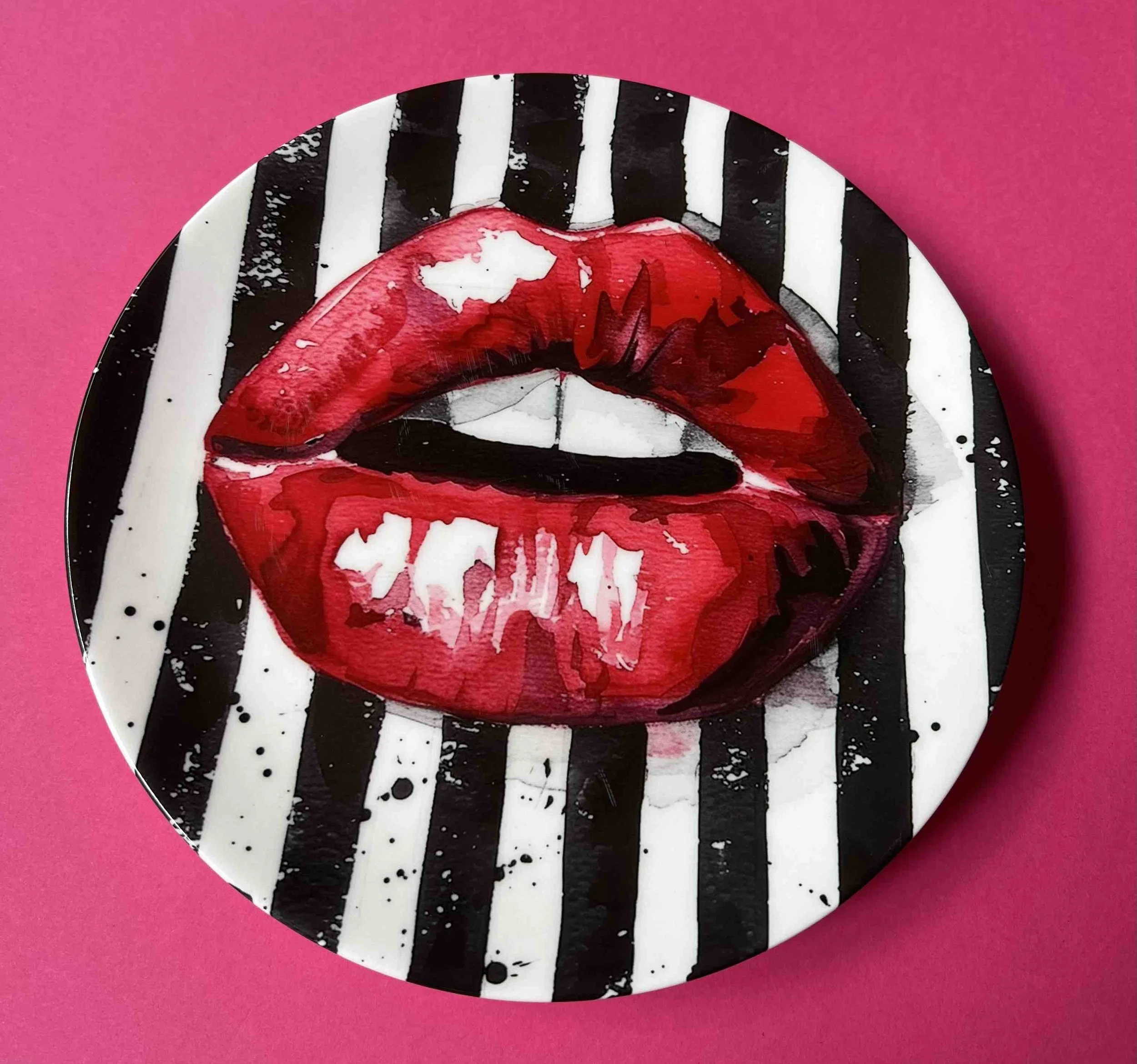 J’Adore- Red lips on black and white stripe